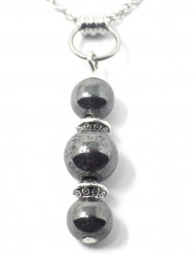 Sehr schöne handgefertigte Halskette präsentiert von ThurColas Création. Diese sehr elegante Halskette besteht aus schwarzen Hämatitperlen (Halbedelstein) und silbernen Metallperlen. Der Anhänger ist an einer Edelstahlkette befestigt. Stil: Classic Chic, Ethnic, Bohemian Länge: 55cm Anhängerhöhe: 35mm Perlen: 10mm, 8mm Materialien: schwarzer Hämatit (Halbedelstein), silbernes Metall und Edelstahl Farbe: schwarz Metallfarbe: Antiksilber Unsere Perlen bestehen aus Hämatit und sind auf einem silbernen Metallstab und einer Edelstahlkette montiert, wobei Hämatit ein Naturstein ist. Dieses Schmuckstück wird mit einer goldfarbenen Geschenktüte geliefert.