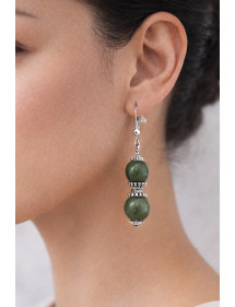 Boucles d'oreilles en perles de jade vert de Taiwan et perles tibétaines