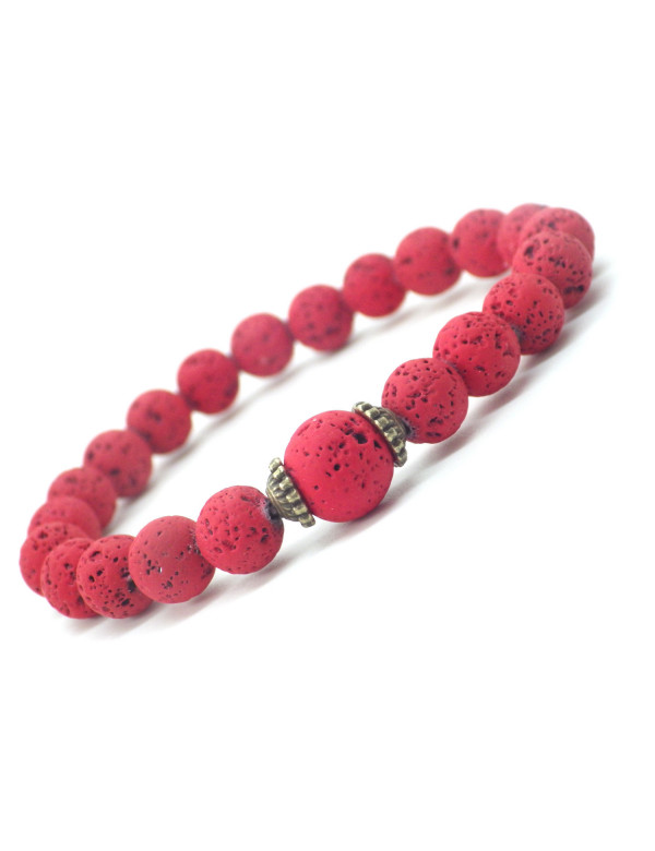 Eine prächtige handwerkliche Kreation von ThurColas Creation. Dies ist ein Damenarmband aus natürlichen roten Lavasteinperlen (Halbedelstein), verziert mit antiken bronzefarbenen Messingbechern. Alles ist auf einem hochwertigen elastischen Faden montiert. Stil: Klassisch, schick, Ethnisch, Böhmisch Länge: 19 cm Perlen: 10 mm Materialien: Roter Lavastein (Halbedelstein), Messing Farbe: Rot Metallfarbe: Antikbronze