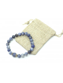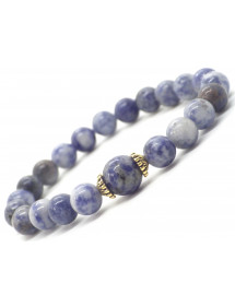 Damenarmband aus blauen Jaspisperlen und tibetischen Perlen aus goldenem Metall