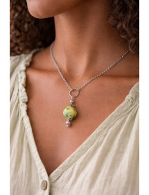 Eine prächtige handwerkliche Kreation von ThurColas Creation. Es handelt sich um eine Halskette aus Edelstahl mit einem Anhänger aus türkisfarbenen Perlen, die mit Harz rekonstituiert und rot getönt sind und mit tibetischen Perlen und goldenen Metallbechern verziert sind. Stil: Klassisch, schick, Ethnisch, Böhmisch. Höhe des Anhängers: 50 mm. Länge der Halskette: 45 cm. Perlen: 10 mm. Materialien: Roter rekonstituierter Türkis, Edelstahl, goldenes Metall. Farbe: Rot. Metallfarbe: Gold, Gold Unsere für den Anhänger dieser Halskette verwendeten Perlen bestehen aus echtem weißem Howlith und sind auf einem goldenen Metallstab montiert. Das Ganze ist an einer vergoldeten Edelstahlkette befestigt. Da Howlith ein Naturstein ist, ist jede Perle in der Farbe einzigartig Daher kann es zu geringfügigen Unterschieden zum vorgestellten Modell kommen, jedes Modell ist daher ein Unikat. Dieses Schmuckstück wird mit einer kostenlosen Geschenktüte geliefert.