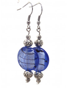 Magnifique création artisanale de la gamme Venezia proposée par ThurColas Création, il s'agit de boucles d'oreilles constituées de perles plates de Murano agrémentées de perles en laiton plaqué argent. Les perles de Murano sont mondialement connues elles sont constituées d'une pâte de verre enroulée autour d'une feuille d'argent. L'ensemble est monté sur des crochets en acier inoxydable. Style : Trop Chic, Classique chic Crochet : Acier inoxydable Hauteur : 60 mm Perles : 20 mm par 9 mm Matériaux : Verre de Murano, laiton plaqué argent et acier inoxydable Couleur : Bleu pastel Couleur du métal : Argent antique Ces superbes boucles d'oreilles sont constituées de perles tibétaines en laiton plaqué argent et des célèbres perles de Murano réalisées en pâte de verre entourant une feuille d'argent. Le tout est monté sur des crochets en acier inoxydable. Ce bijou est livré avec une pochette cadeau de couleur dorée gratuite.