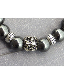Außergewöhnliches Thurcolas-Armband sorgfältig hergestellt in unseren Werkstätten in Frankreich. Dieses Armband besteht aus Hämatitperlen (Halbedelstein) mit einer wunderschönen tibetischen Perle besetzt mit Kristallen. Stil: Ethnisch Tribal Bohemien Hippie-Chic schick klassisch Länge: 190 mm Perlen: 10 mm Materialien: Hämatit (Halbedelstein) Kristall Farbe: Schwarz Metallfarbe: Antiksilber