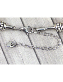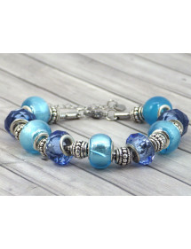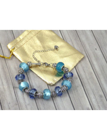 Hervorragendes Edelstahlarmband. Dieses mit Leidenschaft gefertigte Charms Manhattan-Armband besteht aus versilberten Metallperlen blauen Glasperlen in Form eines Blattsilbers und blauen geschliffenen Glasperlen. Die Perlen dieses Armbands sind mit Armbändern und Halsketten im Charms-Stil kompatibel. Das Ganze ist an einer Schlangenkette aus Edelstahl mit einer Verlängerungskette aus Edelstahl befestigt mit der Sie das Armband an Ihr Handgelenk anpassen können. Stil: Charms Länge: 185 mm Verschluss: Karabiner Perlen: 8 bis 14 mm mit großem Loch kompatibel mit Charms-Armbändern Materialien: Edelstahl Messing Glas Farbe: Blau Metallfarbe: Antiksilber Stahl