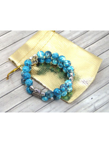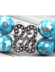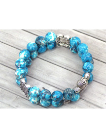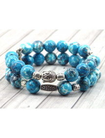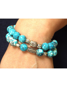 Dieses wunderschöne Damenarmband im Ethno-Stil wurde in unserer Werkstatt in Frankreich handgefertigt. Es wurde sorgfältig hergestellt und besteht aus rekonstituierter weißer Jade in den Farben Blau Lila und Weiß sowie versilberten tibetischen Perlen. Der Buddha-Kopf verleiht diesem Schmuck einen Zen- und antiken Look er ist unverzichtbar für den Urlaub und den Strand. Stil: Bohemian Vintage Ethno Länge: 190 mm Perlen: 10 mm Materialien: Rekonstituierte weiße Jade in Blau Lila und Weiß getönt versilbertes Metall Farbe: Blau Lila Weiß Metallfarbe: Silber