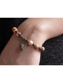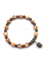 ThurColas bietet Ihnen ein sehr originelles handgefertigtes Damenarmband im Vintage-Look bestehend aus weißen rekonstituierten Jadeperlen in den Farbtönen Orange und Schwarz sowie mit tibetischen Bronzeperlen. Da die weißen Jadeperlen zufällig gefärbt sind kann es zu geringfügigen Unterschieden zum auf dem Foto gezeigten Modell kommen. Das Ganze ist auf einem hochwertigen elastischen Faden montiert und mit einem in Charms montierten Buddha-Kopf verziert. Stil: Böhmisch Vintage Ethnisch Stammeslänge: 190 mm Perlen: 8 mm Materialien: Getönte rekonstituierte weiße Jade Bronze Farbe: Orange Schwarz Bronze Metallfarbe: Bronze