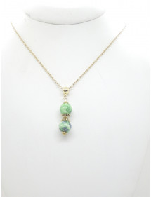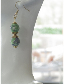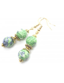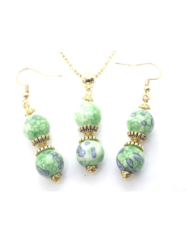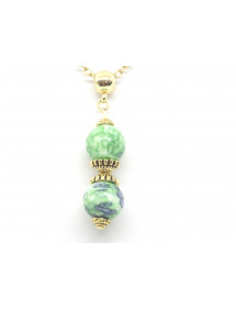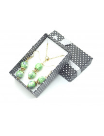 Eine prächtige handwerkliche Kreation von ThurColas Creation. Dabei handelt es sich um ein Schmuckset bestehend aus Ohrringen und einer Halskette aus Edelstahl mit Anhängern aus natürlichen grünen und schwarz gefärbten weißen Jadeperlen (Halbedelstein), verziert mit tibetischen Perlen und goldenen Metallbechern. Stil: Klassisch, schick, Ethnisch, Böhmisch. Höhe des Anhängers: 50 mm. Länge der Halskette: 45 cm. Höhe der Ohrringe: 50 mm. Haken: Französische Perlen: 10 mm. Materialien: Weiße Jade, schwarz und grün getönt (Halbedelstein), Edelstahl vergoldet , goldenes Metall. Farbe: Schwarz, Grün. Metallfarbe: Gold, Gold