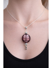 Handgefertigte Halskette mit flachen Lampwork-Glasperlen in Violett und versilbertem Messing
