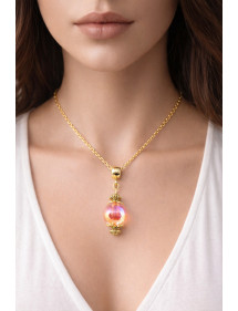 Diese elegante handgefertigte Halskette verleiht Ihrem Outfit einen Hauch von Raffinesse. Ihr Vintage-Stil, veredelt durch eine irisierende rote Acrylperle, macht sie ideal für besondere Anlässe oder um Ihrem Alltag eine elegante Note zu verleihen. Diese Halskette und ihr Verschluss bestehen aus goldbeschichtetem Edelstahl, kombiniert mit goldbeschichteten Messingperlen und -stäben für ein harmonisches und zeitloses Design. Perfekt ausbalanciert mit einer 45 cm langen Kette und einem 35 mm Anhänger, sind diese leichten und komfortablen Ohrringe sowohl elegant als auch einfach zu tragen.