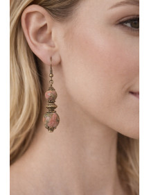 Ohrringe aus grünen Unakite-Perlen und antiken Bronzeperlen
