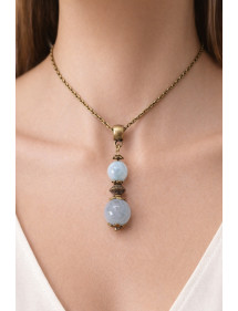 Collier pour femme avec pendentif en perles de quartz bleu et perles tibétaines en bronze antique