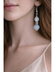 Ohrringe aus Edelstahl mit blauen Quarzperlen und silbernen Messingperlen