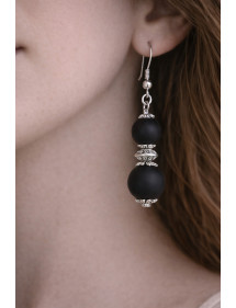 Ohrringe aus Edelstahl mit schwarzen Achatperlen und silbernen Messingperlen