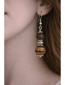 Ohrringe aus Edelstahl mit braunen Tigerauge-Perlen und silbernen Messingperlen