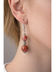 Es handelt sich um sehr schöne handgefertigte Kreationen, die von ThurColas Création präsentiert werden, Ohrringe aus Edelstahl aus natürlichen, roten imperialen Jaspisperlen (Halbedelstein), die mit tibetischen Perlen und versilberten Messingperlen verziert sind. Das Ganze ist auf französischen Haken aus Edelstahl montiert. Mit einer Gesamthöhe von 50 mm und einem 35-mm-Anhänger sind diese leichten und bequemen Ohrringe perfekt ausbalanciert und so konzipiert, dass sie sowohl stilvoll als auch einfach zu tragen sind. Stil: Klassisch, Schick, Ethnisch, Böhmisch Haken: Französisch Höhe: 50 mm Perlen: 10 mm und 8 mm Materialien: Roter kaiserlicher Jaspis (Halbedelstein), Messing, Edelstahl Farbe: Rot, Weiß Metall Farbe: Stahl, Silber