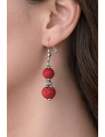 Ohrringe aus Edelstahl mit roten Lavasteinperlen und silbernen Messingperlen