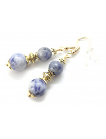 Vergoldete Ohrringe aus Edelstahl mit blauen Jaspisperlen und goldenen Messingperlen