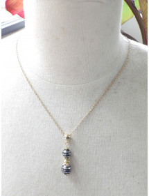 Vergoldete Edelstahl-Halskette für Damen mit schwarzem und verchromtem Hämatit-Perlen-Anhänger und goldenen Messing-Perlen