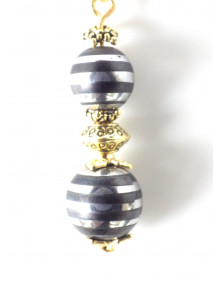 Stil: Klassisch, schick, Ethnisch, Bohème Höhe des Anhängers: 35 mm Länge der Halskette: 45 cm Perlen: 10 mm und 8 mm Materialien: Schwarzes Hämatit und Chrom (Halbedelstein), Messing, Edelstahl Farbe: schwarz Metallfarbe: Gold, Gold