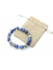 Es handelt sich um ein wunderschönes handgefertigtes Armband von ThurColas Création, das aus natürlichen, blauen kaiserlichen Jaspisperlen (Halbedelstein) besteht, die mit einer zentralen Perle verziert sind, die mit Kristallen besetzt ist. Das Ganze ist auf einem hochwertigen elastischen Draht montiert. Stil: Klassisch, Schick, Ethnisch, Böhmisch Länge: 19 cm Perlen: 10 mm Materialien: Blauer Kaiserjaspis (Halbedelstein), Silber Metall, Kristall Farbe: Blau, Weiß Metall Farbe: Silber