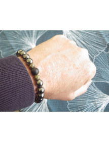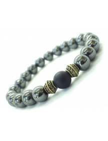 Sehr schönes Herrenarmband, das mit Sorgfalt in unseren Werkstätten in Frankreich hergestellt wird. Dieses Armband besteht aus wunderschönen natürlichen schwarzen Hämatitperlen, schwarzen Achatperlen und sehr hübschen tibetischen Perlen aus antikem Bronzemessing. Es ist die Stärke des Metalls, die bei diesem Modell durchscheint. Stil: Ethnisch, Bohemien, Stammes, Zen Länge: 210 mm Perlen: 10 mm Materialien: Schwarzes Hämatit (Halbedelstein), Schwarzer Achat Messing Farbe: Schwarz Metall Farbe: Antikbronze