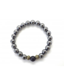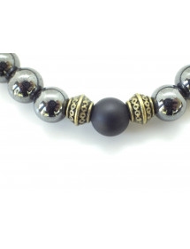 Ethno-Armband für Herren aus schwarzen Hämatitperlen, schwarzem Achat und tibetischen Messingperlen