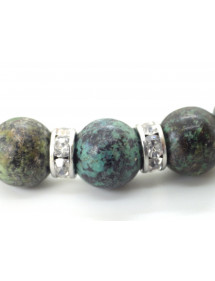 Es handelt sich um ein wunderschönes handgefertigtes Damenarmband, das von ThurColas Création präsentiert wird, aus natürlichen grünen Türkisperlen (Halbedelstein), die mit Edelstahlperlen verziert sind, die mit Kristallen besetzt sind. Das Ganze ist auf einem hochwertigen elastischen Draht montiert. Stil: Klassisch, Schick, Ethnisch, Böhmisch Länge: 19 cm Perlen: 10 mm Materialien: Grün Türkis (Halbedelstein), Edelstahl, Kristall Farbe: Grün Metall Farbe: Silber