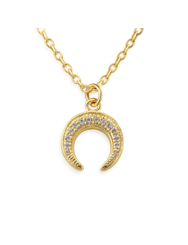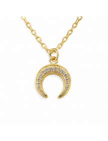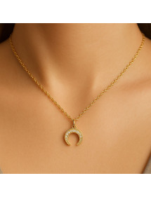 Diese edle Halskette besticht durch einen 13 x 13 mm großen, mondförmigen Anhänger mit zarten Zirkoniasteinen, die das Licht brillant einfangen. Die 45 cm lange, vergoldete Edelstahlkette mit 5 cm Verlängerung passt perfekt zu jedem Outfit. Handgefertigt in unserer Werkstatt in Anjou, verleiht dieses Schmuckstück zeitlose Eleganz und einzigartigen Stil. Machen Sie sich selbst oder anderen ein kostbares Geschenk, ein Symbol für Weiblichkeit und Raffinesse, mit Leidenschaft in Frankreich hergestellt.