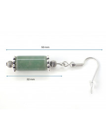 Jeder 30 mm große, zylindrische Anhänger ist aus natürlichem Aventurin gefertigt, der sorgfältig aufgrund seiner feinen Maserung und seines seidigen Glanzes ausgewählt wurde. Versilberte Messingperlen und -beschläge verleihen ihm einen edlen Look.