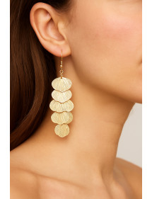 Diese goldfarbenen Ohrringe mit stilisierten Quasten vereinen Eleganz und Leichtigkeit in einem modernen und zugleich raffinierten Design. Jede fein strukturierte Quaste erinnert an die fließende Bewegung von Blütenblättern im Wind und fängt das Licht mit subtilen goldenen Reflexen ein. Vollständig aus goldfarbenem Edelstahl gefertigt, bieten sie dauerhaften Glanz und hervorragende Verschleiß- und Korrosionsbeständigkeit. Hypoallergen und leicht, können sie den ganzen Tag bequem getragen werden. Mit ihrer Länge von 75 mm und den mehrlagigen Quasten strecken sie die Gesichtssilhouette wunderschön und verleihen jedem Outfit einen Hauch von strahlender Raffinesse. Jedes Paar wird in unserer Werkstatt in Anjou handgefertigt. Dabei kommt französische Handwerkskunst zum Einsatz, die Liebe zum Detail und makellose Verarbeitung garantiert. Diese Ohrringe sind perfekt für alle, die ein elegantes, zeitloses und leicht zu kombinierendes Schmuckstück suchen.