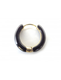Diese schwarzen Creolen bestechen durch ihr schlichtes und zugleich raffiniertes Design. Der Kontrast zwischen dem tiefen Glanz der schwarzen Emaille und dem warmen Schimmer der 18-karätigen Vergoldung schafft eine perfekte Balance zwischen Modernität und zeitloser Eleganz.