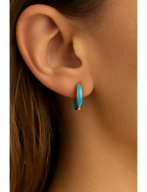 Creolen aus hellblauer Emaille und 18 Karat vergoldetem Edelstahl – eleganter französischer handgefertigter Schmuck