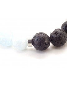 Dieses Armband besteht aus 8 mm großen Naturperlen, abwechselnd sieben durchscheinenden blauen Quarzperlen und schwarzen Lavasteinperlen, getrennt durch zwei Edelstahlscheiben. Mit einer Gesamtlänge von 19 cm ist es auf einem hochfesten elastischen Faden befestigt, um Komfort und Haltbarkeit zu garantieren. Blauer Quarz, ein Stein der Ruhe, bildet einen eleganten Kontrast zur porösen und rauen Textur des Lavasteins. Jedes Armband wird in unserer Werkstatt in Anjou von Hand gefertigt. Dabei kommt französisches Handwerks-Know-how zum Einsatz, um eine saubere und langlebige Verarbeitung zu gewährleisten.