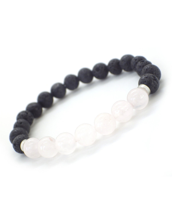 Dieses Armband vereint die matte Tiefe von schwarzem Lavastein mit der pudrigen Weichheit von Rosenquarz zu einem raffinierten und beruhigenden Kontrast. Die 8 mm großen Perlen sorgen für eine dezente und dennoch elegante Präsenz, während die Edelstahl-Abstandshalter einen modernen und strahlenden Touch verleihen.