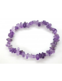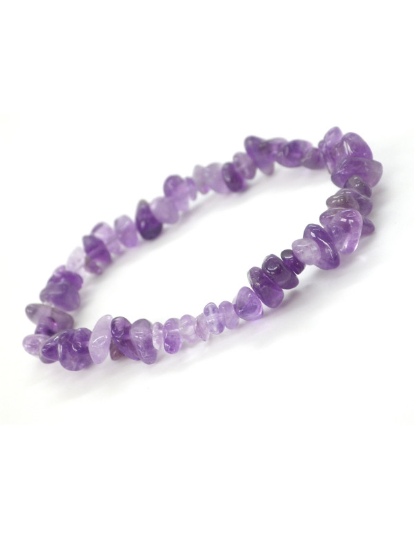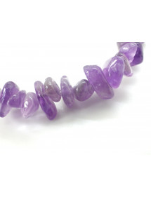 Dieses Armband besteht aus polierten natürlichen Amethystsplittern und ist auf ein robustes und langlebiges elastisches Band aufgezogen.