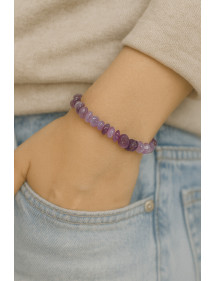 Dieses Armband aus echten Amethystsplittern besticht durch seine hell- bis tiefvioletten Farbtöne und symbolisiert Ruhe und Eleganz.