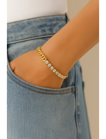 18 Karat vergoldetes Edelstahlarmband mit handgeschliffenen weißen Zirkoniasteinen für außergewöhnlichen Glanz.