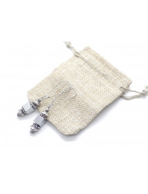 Diese verchromten Hämatit-Ohrringe bestechen durch ihre wunderschönen, durchbrochenen Fassungen aus versilbertem Messing und die länglichen Edelstahlreifen. Ihr Design unterstreicht den metallischen Glanz des Hämatits und verleiht ihnen eine raffinierte und zeitlose Eleganz. Mit einer Gesamtlänge von 60 mm verlängern sie das Dekolleté optisch und passen sowohl zu klassischen als auch zu modernen Stilen. Jedes Stück wird in unserer Werkstatt in Anjou handgefertigt, was eine sorgfältige Verarbeitung und handwerkliche Qualität garantiert.