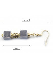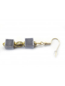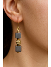 Diese eleganten Ohrringe vereinen die mineralische Kraft des natürlichen Hämatits mit dem Glanz von Gold. Zwei Hämatitwürfel, getrennt durch eine gravierte, vergoldete Messingperle, bilden eine harmonische und edle Komposition. Die 18-karätig vergoldeten Haken sorgen für angenehmen Tragekomfort und Langlebigkeit und verleihen den Ohrringen einen Hauch von Leuchtkraft. Jedes Paar wird in unserer Werkstatt in Anjou in traditioneller französischer Handarbeit gefertigt.
