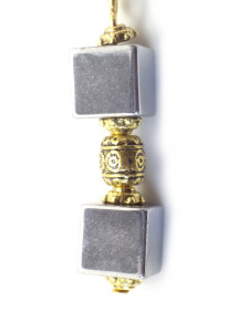 Diese eleganten Ohrringe vereinen die mineralische Kraft des natürlichen Hämatits mit dem Glanz von Gold. Zwei Hämatitwürfel, getrennt durch eine gravierte, vergoldete Messingperle, bilden eine harmonische und edle Komposition. Die 18-karätig vergoldeten Haken sorgen für angenehmen Tragekomfort und Langlebigkeit und verleihen den Ohrringen einen Hauch von Leuchtkraft. Jedes Paar wird in unserer Werkstatt in Anjou in traditioneller französischer Handarbeit gefertigt. Dieses 50 mm lange Schmuckstück besticht durch zwei Würfel aus natürlichem Hämatit aus Brasilien, eingefasst von gravierten, vergoldeten Messingperlen. Die Verschlüsse bestehen aus 18-karätig vergoldeten Edelstahlhaken und garantieren Langlebigkeit und hypoallergenen Tragekomfort. Handgefertigt in unserer Werkstatt in Anjou.