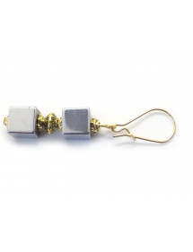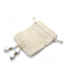 Ces boucles d’oreilles lumineuses associent l’élégance du doré à la force minérale de l’hématite naturelle. Chaque bijou se compose de deux cubes d’hématite du Brésil, encadrés de délicates coupelles ajourées en laiton doré. Les créoles fermées plaqué or 18K assurent un maintien parfait et un rendu raffiné. Un modèle chic et intemporel, réalisé à la main dans notre atelier en Anjou.