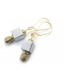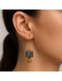 Diese eleganten Ohrringe vereinen die mineralische Schönheit von natürlichem Hämatit mit dem warmen Glanz fein gearbeiteter Goldperlen. Sie sind an kleinen Goldcreolen befestigt und bieten eine perfekte Balance aus Eleganz und Tragekomfort. Jedes Paar wird in unserer französischen Werkstatt in Anjou handgefertigt und garantiert so ein einzigartiges und langlebiges Schmuckstück. Gesamtlänge: 40 mm. Material: Natürlicher Hämatit aus Brasilien, handgeschnitzte Messingperlen, gefasst in kleinen, vergoldeten Edelstahlreifen. Brillante und langlebige Oberfläche. Handgefertigt in Frankreich, hergestellt in unserer Werkstatt in Anjou.