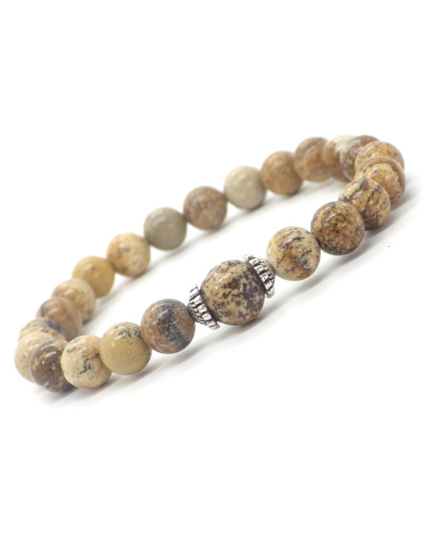 Damenarmband aus braunen Jaspisperlen und tibetischen Perlen