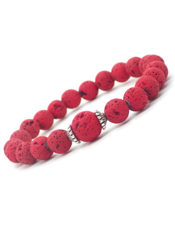 Damenarmband aus roten Lavasteinperlen und tibetischen Perlen
