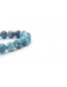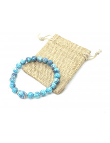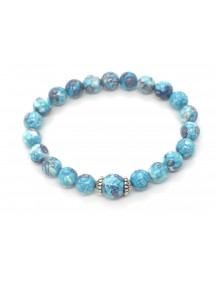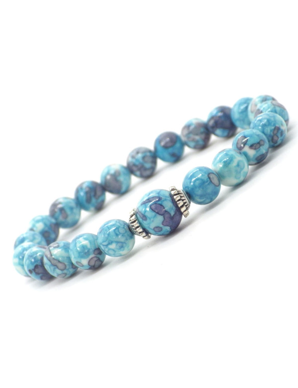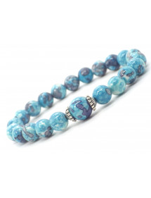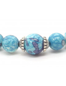 Damenarmband aus blau und lila getönten weißen Jadeperlen und tibetischen Perlen