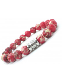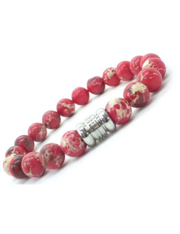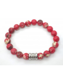 Prächtiges Armband für Herren, Modell aus Stahl. Dieses sorgfältig in unseren Werkstätten in Frankreich gefertigte Armband aus der Steel-Reihe besteht aus wunderschönen natürlichen roten Imperial-Jaspisperlen und einer sehr hübschen zentralen Edelstahlperle. Es ist die Stärke des Metalls, die in diesem Steel-Modell durchscheint. Stil: Ethnisch, Bohemian, Tribal, Zen Länge: 210 mm Perlen: 10 mm Materialien: Imperialer Jaspis (Halbedelstein), Edelstahl Farbe: Rot Metallfarbe: Edelstahl