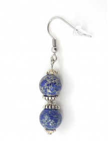 Prächtige handwerkliche Kreation von ThurColas Creation. Hierbei handelt es sich um ein Schmuckset bestehend aus Ohrringen und einer Halskette aus Edelstahl mit Anhängern aus Naturperlen aus blauem kaiserlichem Jaspis (Halbedelstein), verziert mit Perlen, tibetischen Tellern und silbernen Metallbechern. Stil: Klassisch, schick, Ethnisch, Böhmisch. Höhe des Anhängers: 50 mm. Länge der Halskette: 45 cm. Höhe der Ohrringe: 50 mm. Haken: Französische Perlen: 10 mm. Materialien: Blauer imperialer Jaspis (Halbedelstein), Edelstahl, versilbertes Metall Farbe: Blau, Weiß. Metallfarbe: Silber, Stahl