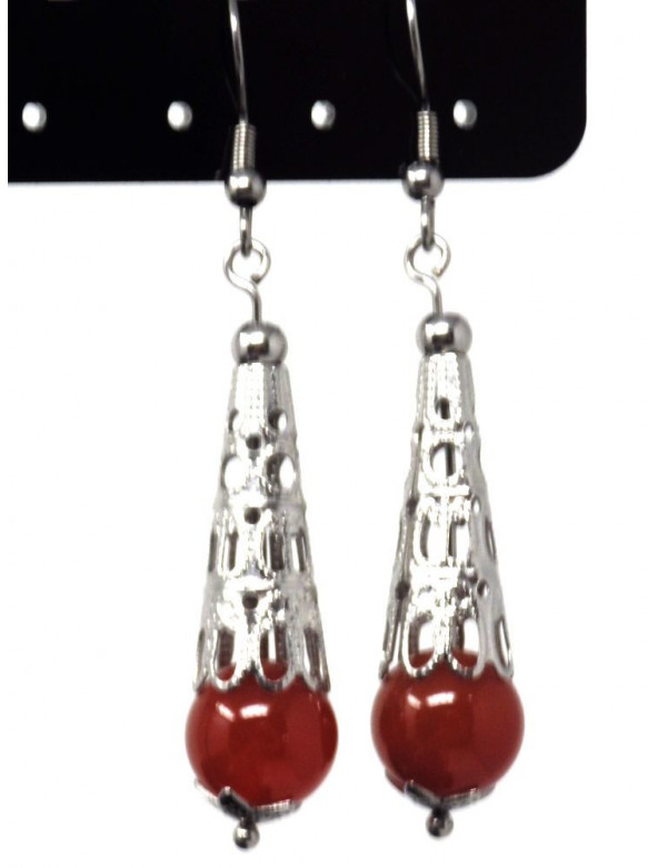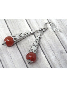 Diese hervorragenden ThurColas-Ohrringe wurden in unseren Werkstätten in Frankreich mit Leidenschaft hergestellt und bestehen aus einem filigranen Edelstahlkegel und prächtigen 10-mm-Perlen aus rotem Karneol (Halbedelstein). Alle Metallteile dieser Ohrringe bestehen aus Edelstahl. - Stil: böhmisch, ethnisch, klassisch schick - Häkelnadel: französisch - Höhe: 55 mm - Perlen: 10 mm - Materialien: Karneol, Edelstahl - Farbe: rot, braun, orange - Metallfarbe: Antiksilber, Stahl