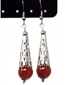 Edelstahlohrringe für Damen mit filigranem Stahlkegel und roten Karneolperlen