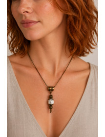 47,07 $Es handelt sich um eine prächtige handgefertigte Kreation, die von ThurColas Création präsentiert wird, ein Schmuckset, das aus Ohrringen und einer Bronzekette mit Anhängern aus natürlichen weißen Howlith-Perlen (Halbedelsteinen) besteht, die mit tibetischen Perlen und Bronzebechern verziert sind. Mit einer Gesamthöhe von 50 mm und einem 35-mm-Anhänger sind diese leichten und bequemen Ohrringe perfekt ausbalanciert und so konzipiert, dass sie sowohl stilvoll als auch einfach zu tragen sind. Jede Halskette besteht aus einer 45 cm langen Kette und einem Karabinerverschluss aus antikem Bronzemessing, dazu ein 35 mm langer Anhänger, der aus einem Stiel und Perlen aus antikem Bronzemessing sowie zwei Perlen von 10 und 8 mm besteht. Stil: Klassisch, schick, Ethnisch, Böhmisch Höhe des Anhängers: 35 mm Länge der Halskette: 45 cm Höhe der Ohrringe: 50 mm Haken: Französische Perlen: 10 mm und 8 mm Materialien: Weißer Howlith (Halbedelstein), Bronze Farbe: weiß Metallfarbe: Bronze